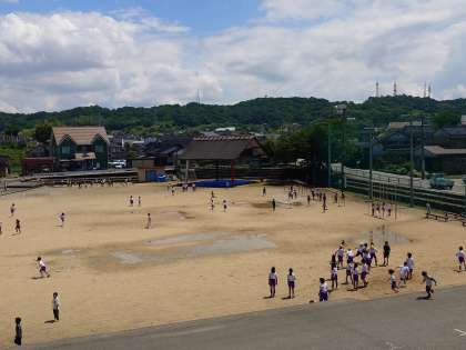 晴天のもと、グラウンドで遊んでいる子が多いと、つい写真をとりたくなります。