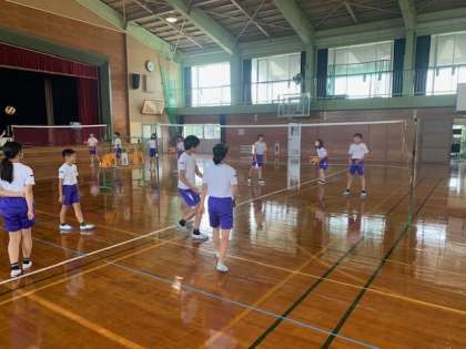 体育科の時間には、ビーチボールを行っています。チームで声を掛け合いながら、パスをつないでいます。今日は、各団で練習内容を考え、苦手な動きを中心に練習しました。ラリーがつながるように、がんばりましょう。
