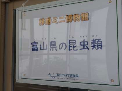 前回の天体写真の展示に引き続き、「富山県の昆虫類」についての、科学博物館の移動展示がお目見えしました。