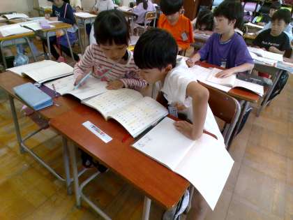 国語科の学習で、同じ部分をもつ漢字をペアでたくさん探しました。