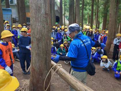 午前中の活動「森の遊び場づくり」が始まっています。 「気候は快適です!」とのことです。