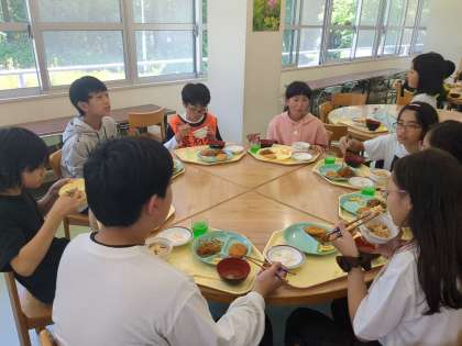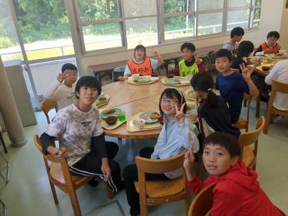 活動を終えて昼食を取っています。午前の活動はとても充実していたことが子供たちの表情から伺うことができます。