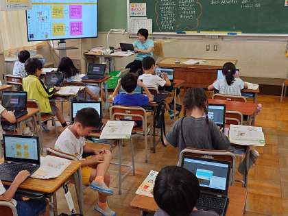 この日も2組では授業研究を行っていました。(3組は自習でしたが、しっかり読書に取り組んでいました。)