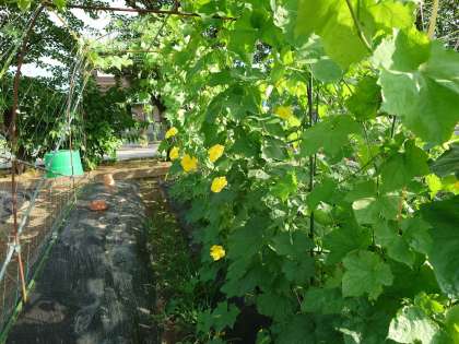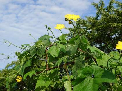 子供たちが5月に植えた畑のヘチマが、梅雨の雨で元気に育っています。おそらくもう少し待てば梅雨明けの方も聞かれるでしょう。暑さに負けず元気な実を付けてほしいものです。