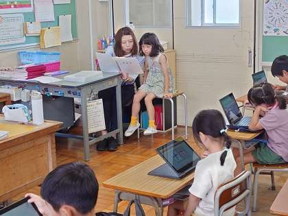 初めて担任の先生からもらう「通知票 あゆみ」。担任は丁寧に説明を加えていました。