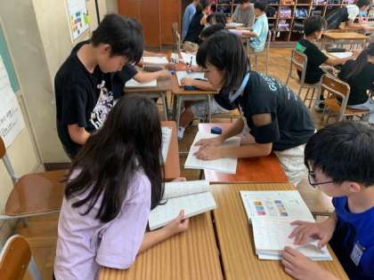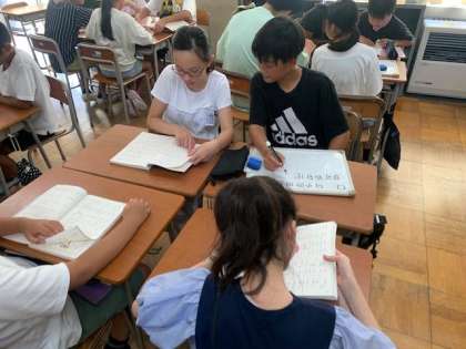 今日から、本格的に授業が始まりました。国語の時間の前に、ウォーミングアップとして、口に2画付け足してできる漢字を考えました。グループの友達と一緒に話し合って考える姿が見られました。