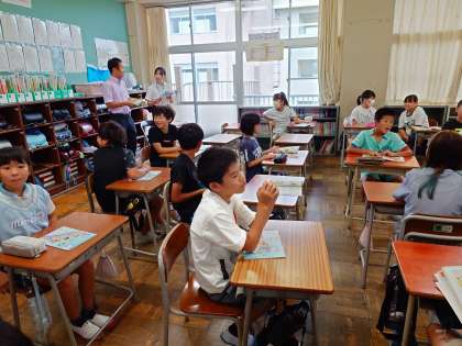 休み時間はいつも子どもたちに囲まれ、すっかり打ち解けていらっしゃいます。