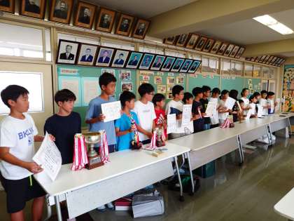 夏休みに頑張った成果が表彰された児童の伝達表彰を行いました。