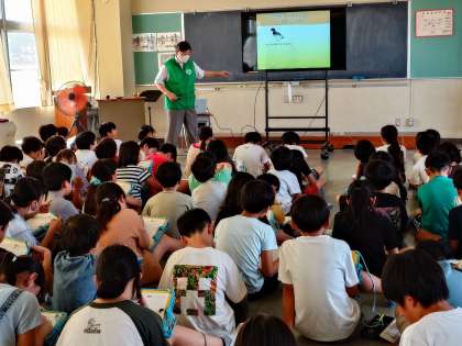 「地球温暖化防止活動推進委員」の方に、これまでの4年生の「環境チャレンジ10の取組」の成果をふまえたお話をしていただきました。以下は児童の感想です。
