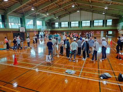 見出しの訓練が体育館、備蓄倉庫、貯水槽の施設を使用して行われました。