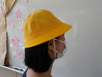がっこうにとうこうするときには、なふだをつけて、あんぜんぼうしをかぶります。