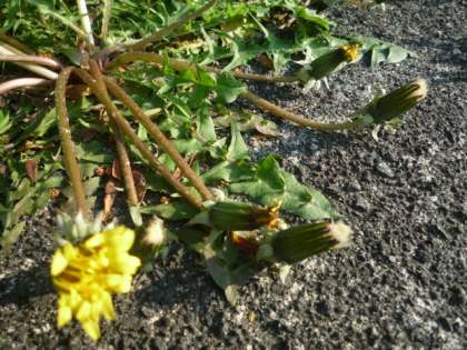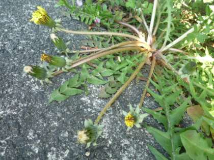 花がしぼんで、黒っぽい色にかわっているたんぽぽがあります。