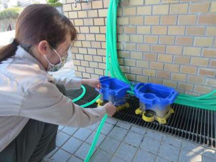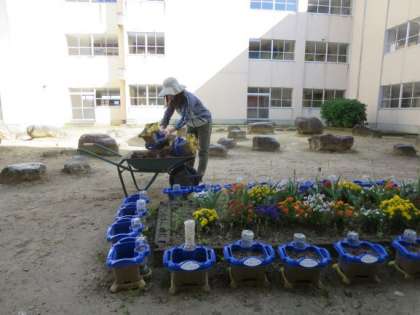 先生たちは今日、あさがおやチューリップを育てていたはちの土をあけて、あらいました。