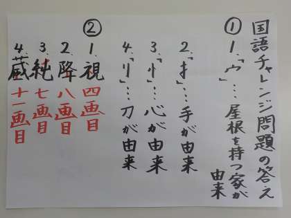 先週の金曜日に出した算数の問題と国語の問題の正解を発表します。