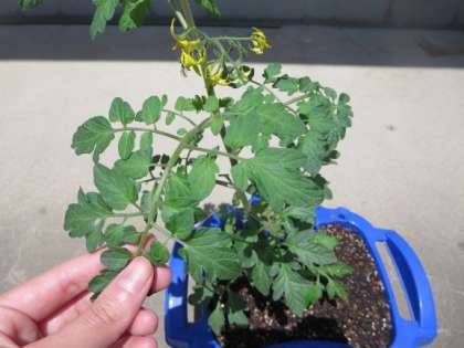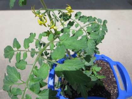 ミニトマトの鉢に水をあげていたら、きいろの小さな花が5つさいていました。みなさんのミニトマトはどうですか?じつは、ミニトマトのはっぱからも、ミニトマトのにおいがするんですよ。みなさんもさわってにおいをかいでみてくださいね。