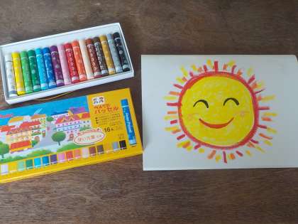 みなさん ずがこうさくの 「おひさまにこにこ」は かきましたか。