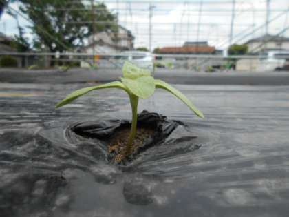 5月20日 ひまわりの畑に行ってみると、葉っぱがふえていました。少しずつせい長をしているのを見るとうれしい気もちになりますね。