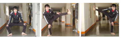 4 左足を上げましょう。(真ん中の写真を見ましょう。)