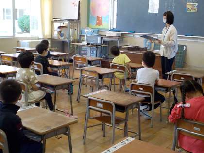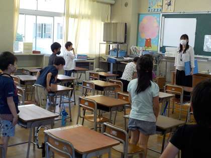朝の会では、しっかりと担任の先生の話を聞くことができます。朝の挨拶もさわやかです。
