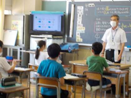 6/8 【6年】算数「分数のかけ算」 公開日 2020/06/09 更新日 2020/06/09 6年生の活動 高学年は学級を二つに分けて、少人数で算数を学習しています。分からないことをはっきりさせながら、進めています。