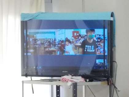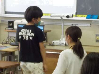 Web会議システムを使って、転入生の紹介をしました。カメラの前で堂々と自己紹介ができました。また、各学級の子供たちもしっかりとお話を聞くことができました。