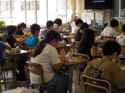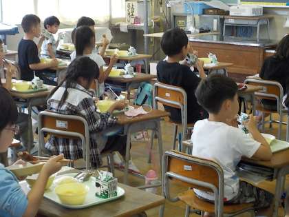 できたての給食はとてもおいしいです。具だくさんの豚汁をおいしくいただきました。