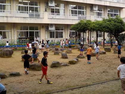 給食後、1年生が中庭でリフレッシュしています。