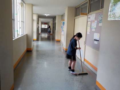 美化委員会の5年生が、自主的に朝のボランティア清掃に取り組んでいます。