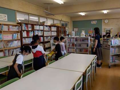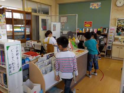 たくさんの呉羽っ子が本を返却したり、借りにきたりしています。