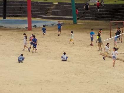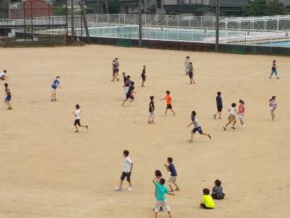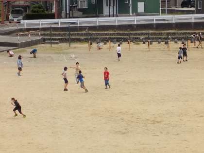 梅雨の晴れ間をぬって、グラウンドでリフレッシュする呉羽っ子たちです。