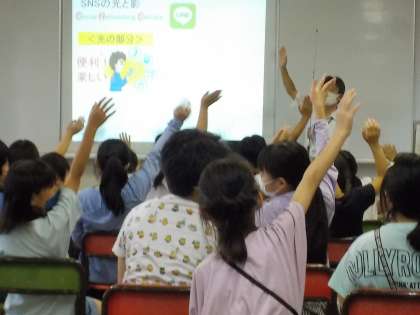 外部講師の先生にきていただき、情報モラルについて学習しました。よい、わるいと判断できる強い心を磨いていきます。