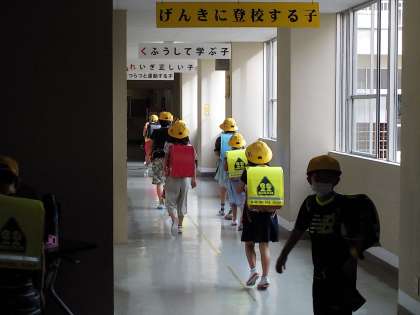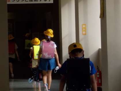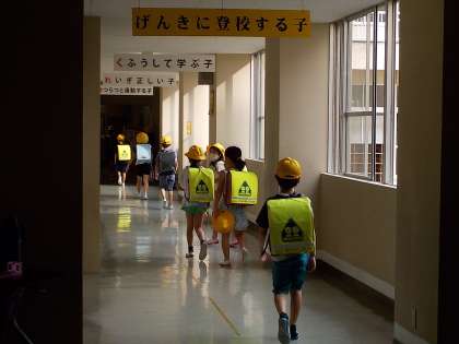 蒸し暑い中、今日も元気に呉羽っ子が登校してきました。