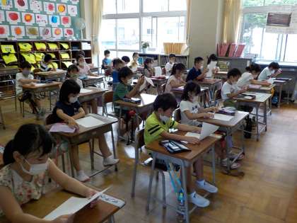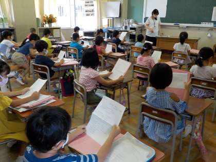 朝の会で「今月の歌」がスタートしました。今日は、歌詞の確認です。