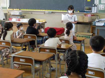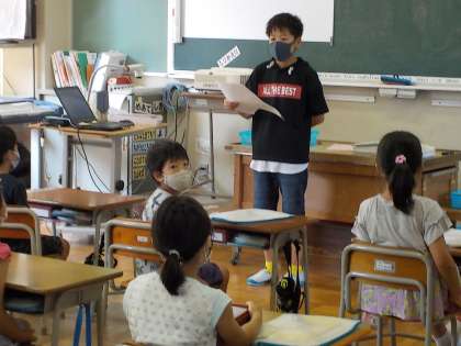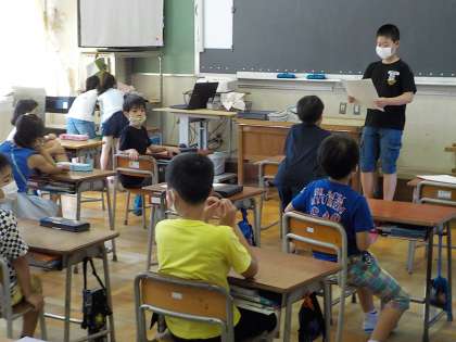 朝の会の前に、各委員会からお知らせをしています。