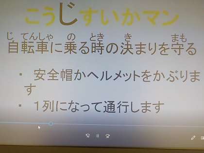 *自転車に乗るときのきまりを守ること(安全帽かヘルメットをかぶる)