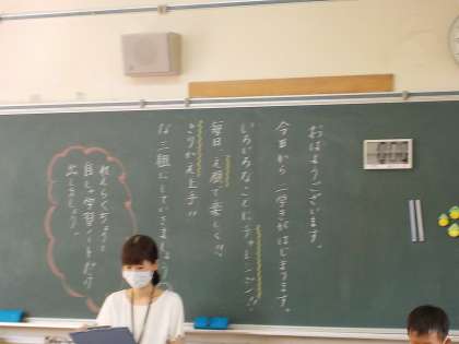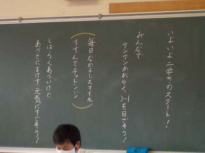 黒板には、みんながやる気が出るメッセージが書かれています。