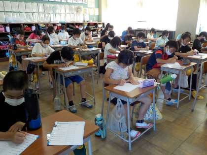 静けさの中、集中して朝の学習に取り組んでいます。