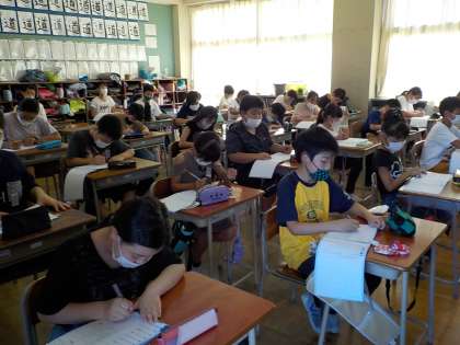 静けさの中、集中して朝の学習に取り組んでいます。