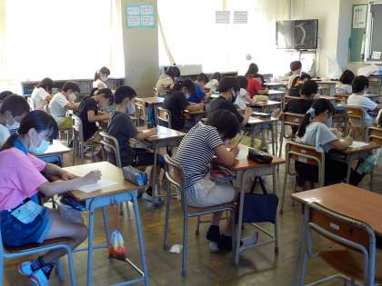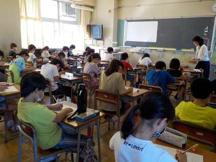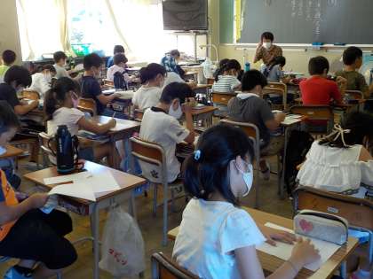 4年生は、漢字のプリントに取り組んでいます。