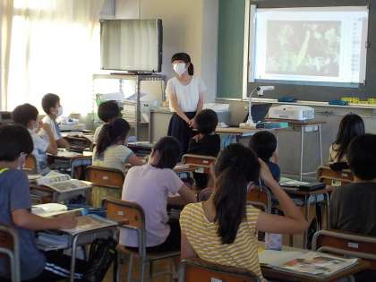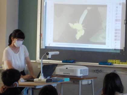 ヘチマの花が散ってから、実がなるまでの過程について確認しました。