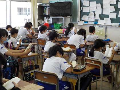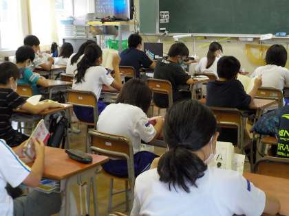 毎週木曜日の朝の学習は、読書です。本の世界に浸りきる呉羽っ子です。