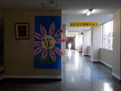中央廊下に、友達から言われてうれしいあったか言葉が掲示されています。あったか言葉・行動があふれる呉羽小学校を目指して、取り組んでいきます。