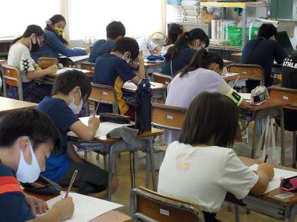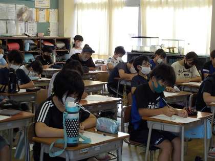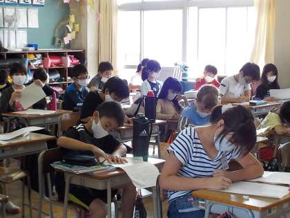 今日の朝の学習は、小数のわり算等、計算問題に取り組んでいます。