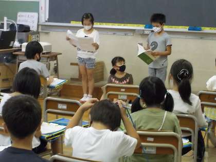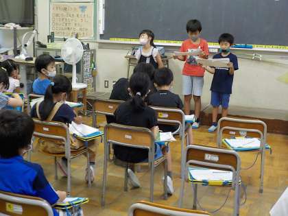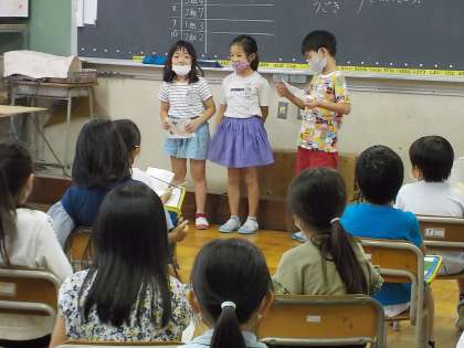 3クラスが交流して、国語「お手紙」の音読発表会を行いました。声の出し方や動きを工夫して、音読しました。