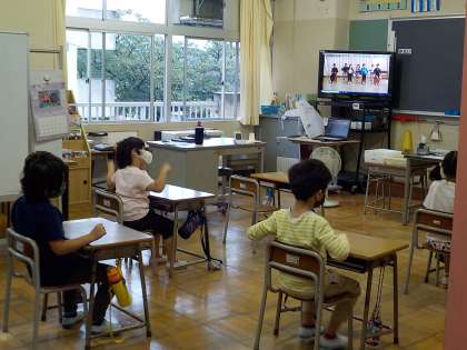 朝の会で、毎朝、からだリメイク体操を行っています。 身体を動かして、すっきりしています。