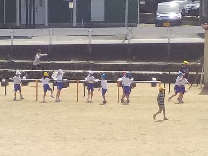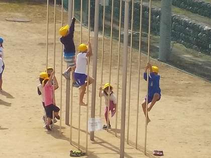 青空の下、のびのびと運動しています。
