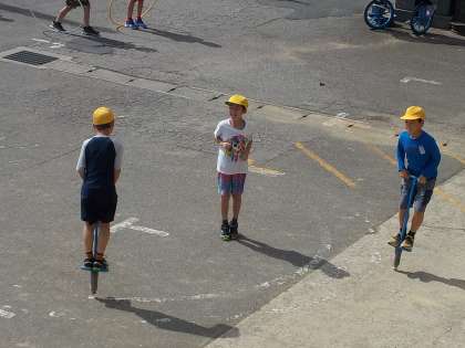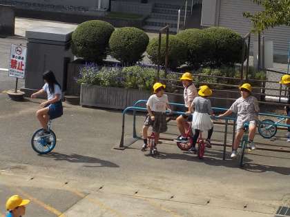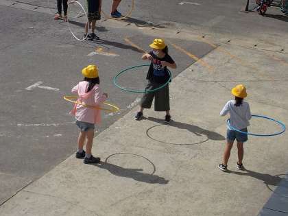 一輪車やフラフープ、ホッピング等に取り組んでいる呉羽っ子もいます。