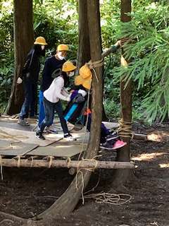 手作りブランコで遊んでいます。