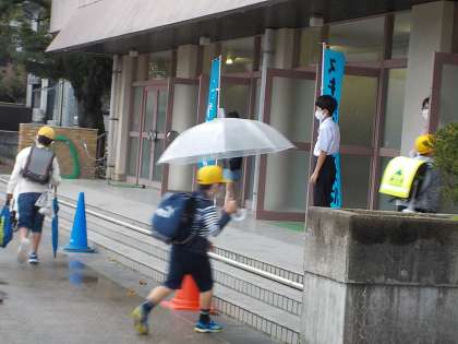 小雨の中でしたが、元気なあいさつの輪が広がりました。呉羽中学校の1年生のみなさん、ありがとうございました。