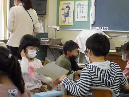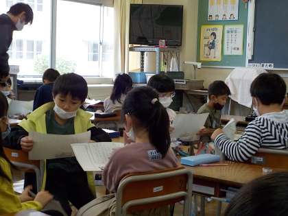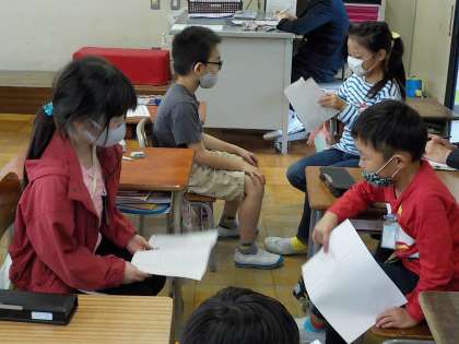続いて、おとなりさんと自分の考えを伝え合いました。